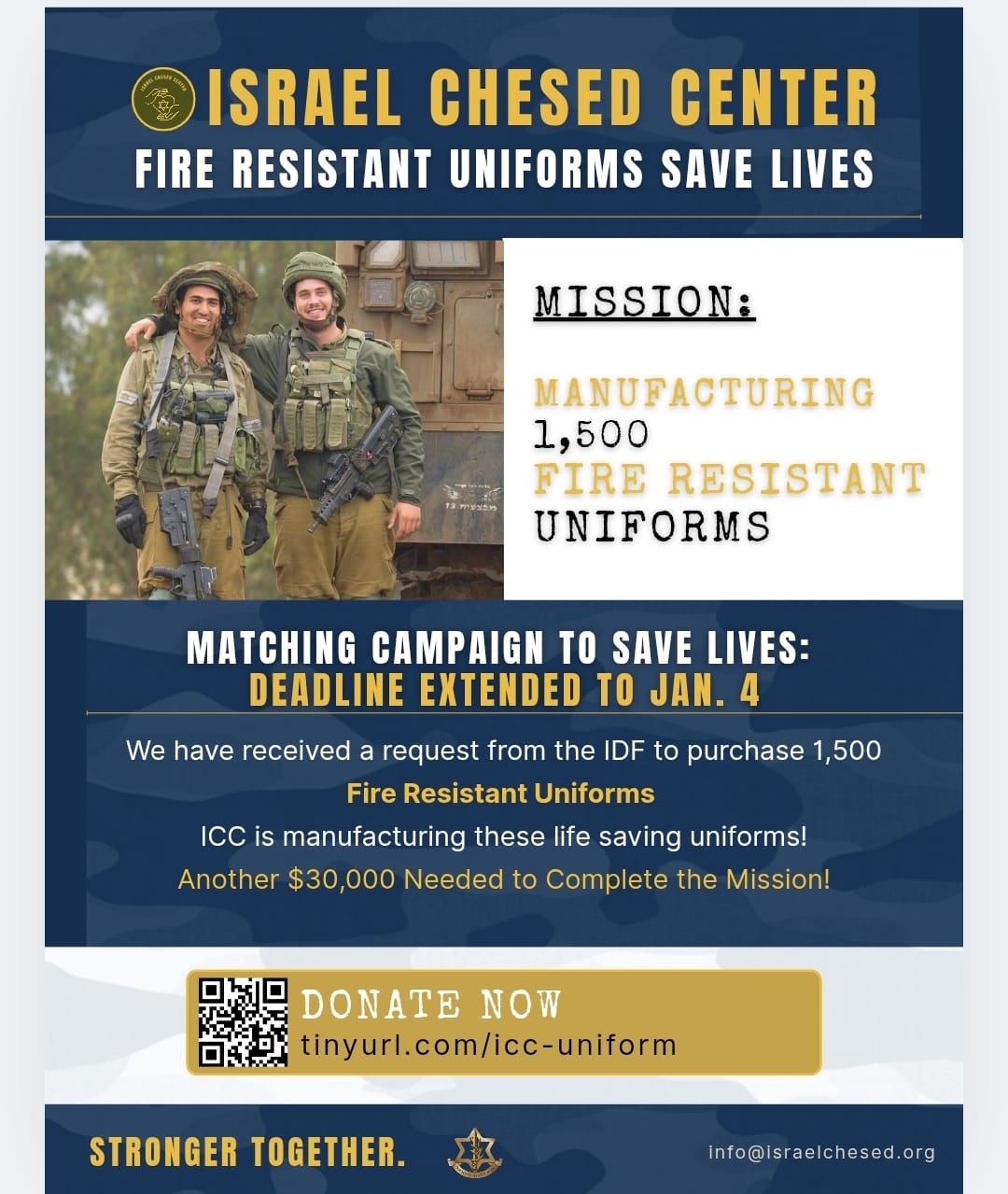 We are 100% volunteer based. 100% funds go directly to support Israel!